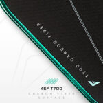 Created with a double thermoforming process, the Franklin C45 Dynasty 14mm Pickleball Paddle promises durability, with the edge guard doing its part to keep the T700 Raw Carbon hitting surface in tip top shape. This surface boasts a peel ply layer that allows the 45° weave of the carbon fiber to grip the ball as it dwells on the paddle face, leading to impressively reliable spin. Finally, the extended 5.6” handle completes this elongated paddle by providing exceptional reach at the net and plenty of room and leverage for two-handed shots.